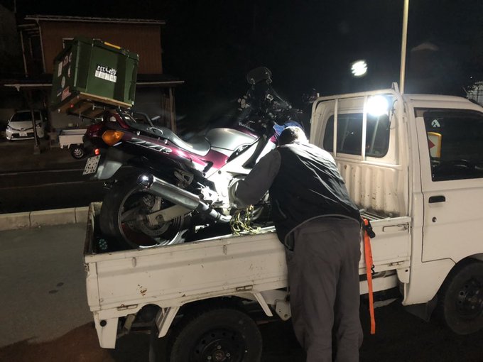 本日300km走行ほどで高速でエンジン停止、レッカー手配のあと再起動できたのでキャンセルして下道へ自走。 いつもの車屋の工場長に回収してもらいました。 再起動できたなら燃料系統の水分の影響では無いか、とのこと。 #ZZR600 怪我事故なく終われば🆗 pic.twitter.com/4eUUjcbTVj